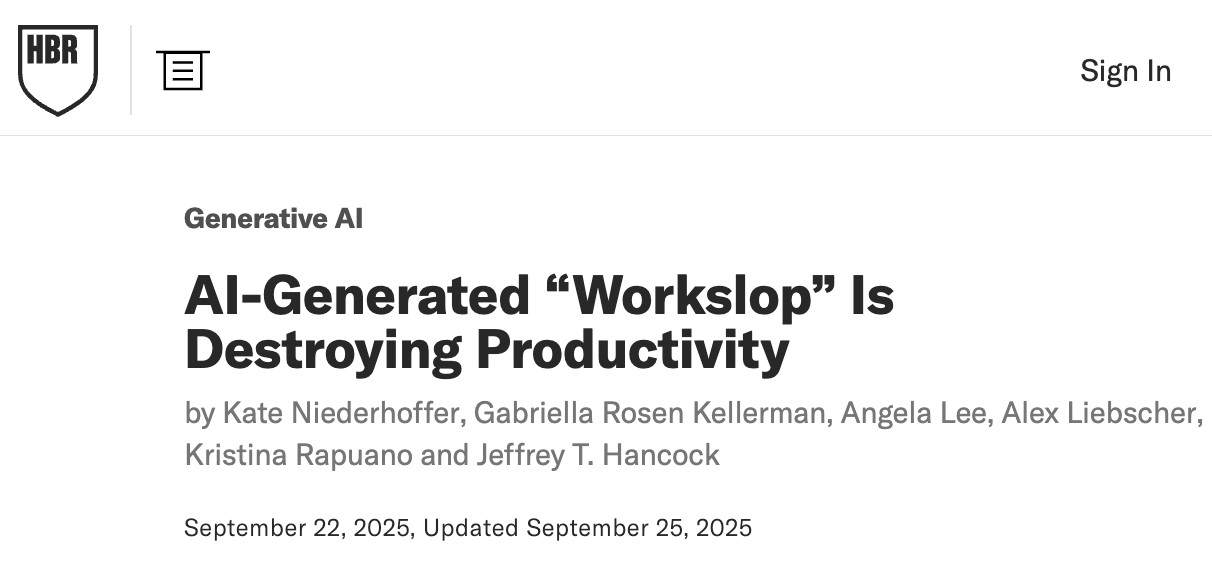 Some workers report that AI boosts their productivity, but only by creating “workslop” that’s passed on to others, ultimately reducing overall productivity.