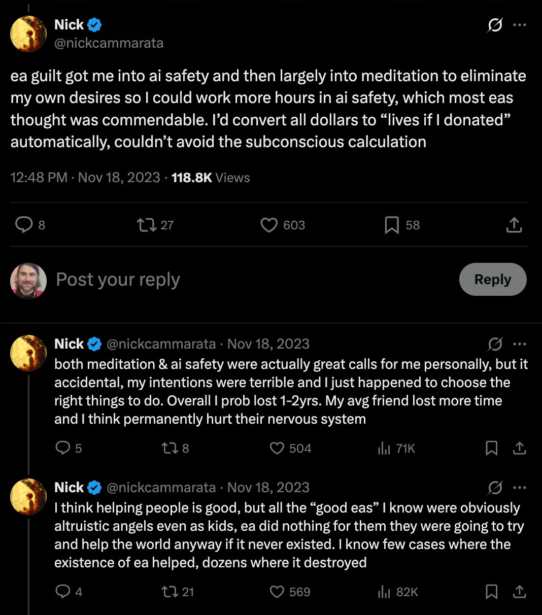 Consider this thread from someone who worked for OpenAI for 5 years and used to be an EA: