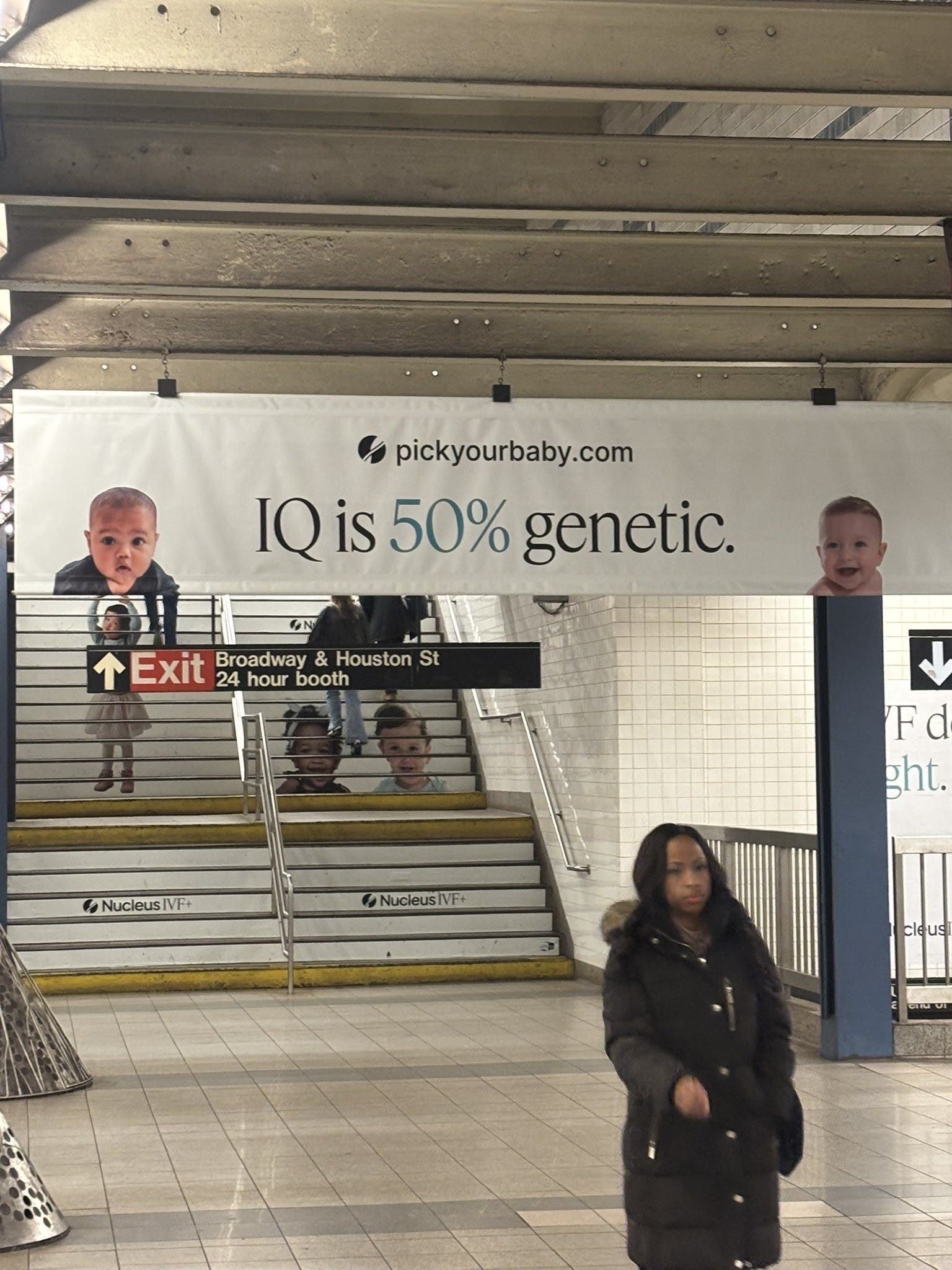 It’s from a company called Nucleus Genomics, which offers services that analyze nearly 100% of a prospective parent’s DNA “to give you a more complete picture of your health risks.” It also offers a “Nucleus IQ score,” which it describes as “the only IQ score prediction based on your DNA and the latest science.” As noted in a recent KQED interview, Nucleus is one of the companies that has “unveiled tests that they say can give some insight into an embryo’s future IQ, height, or even eye color.”