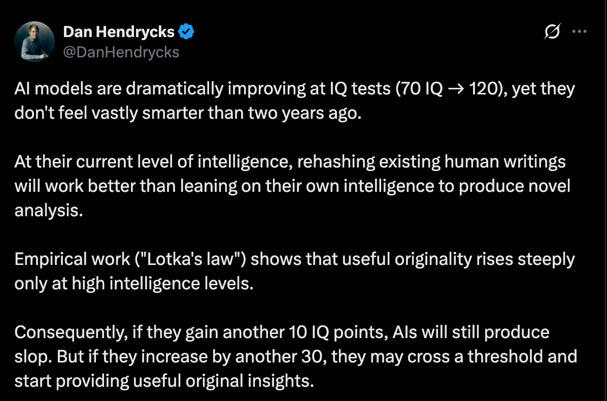 Another AI safety figure named Dan Hendrycks — founder of the Center for AI Safety and an advisor at xAI — posted this image: