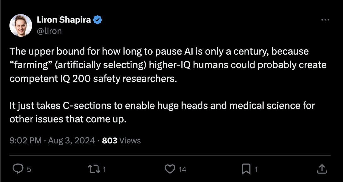 Liron Shapira, a noted TESCREALists within the AI doomer/safety camp, writes: