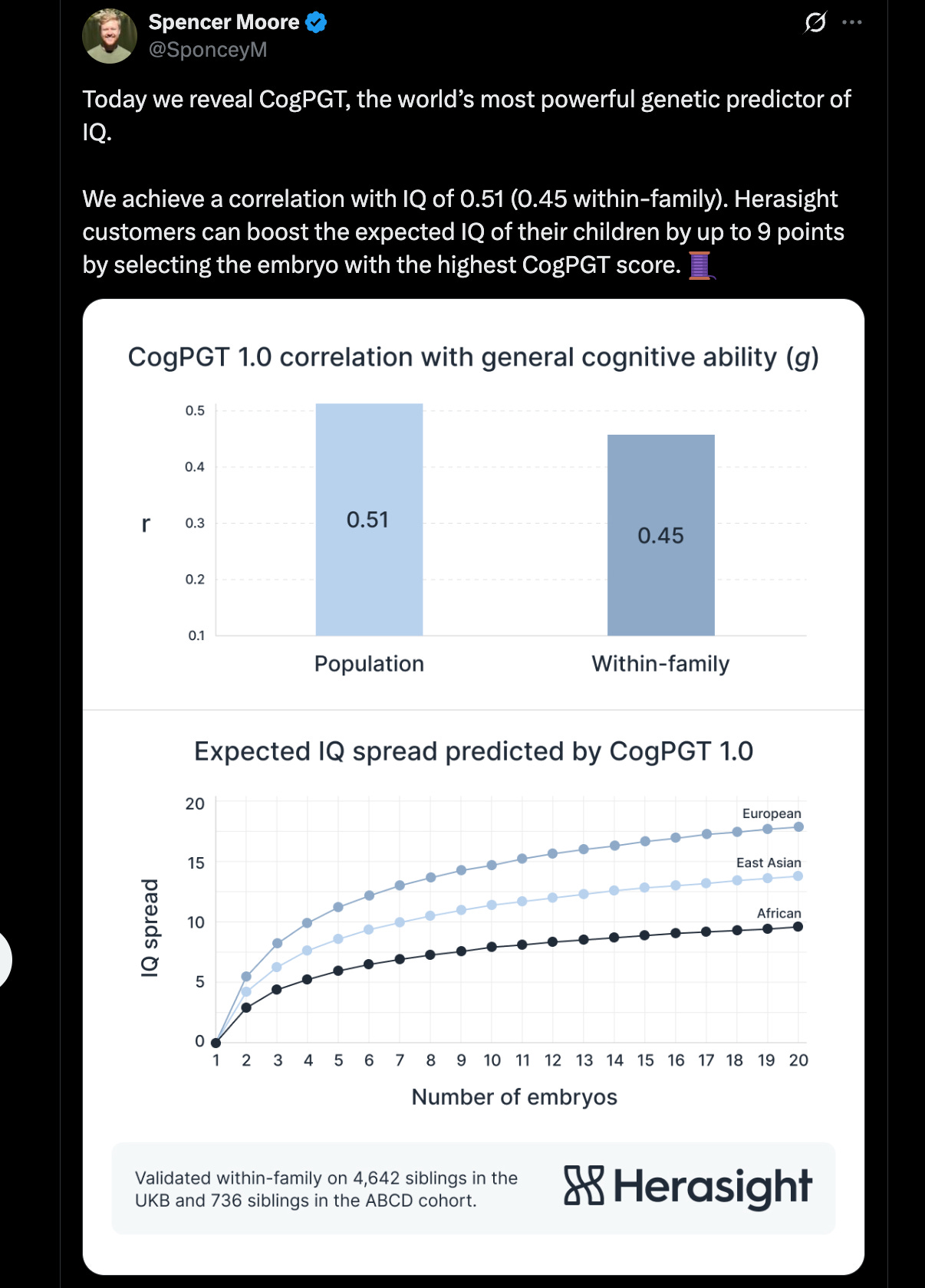 All of this is prefatory to a few recent examples of eugenics that I’d like to foreground. For example, I came across this tweet the other day about “CogPGT,” described as “the world’s most powerful genetic predictor of IQ.”