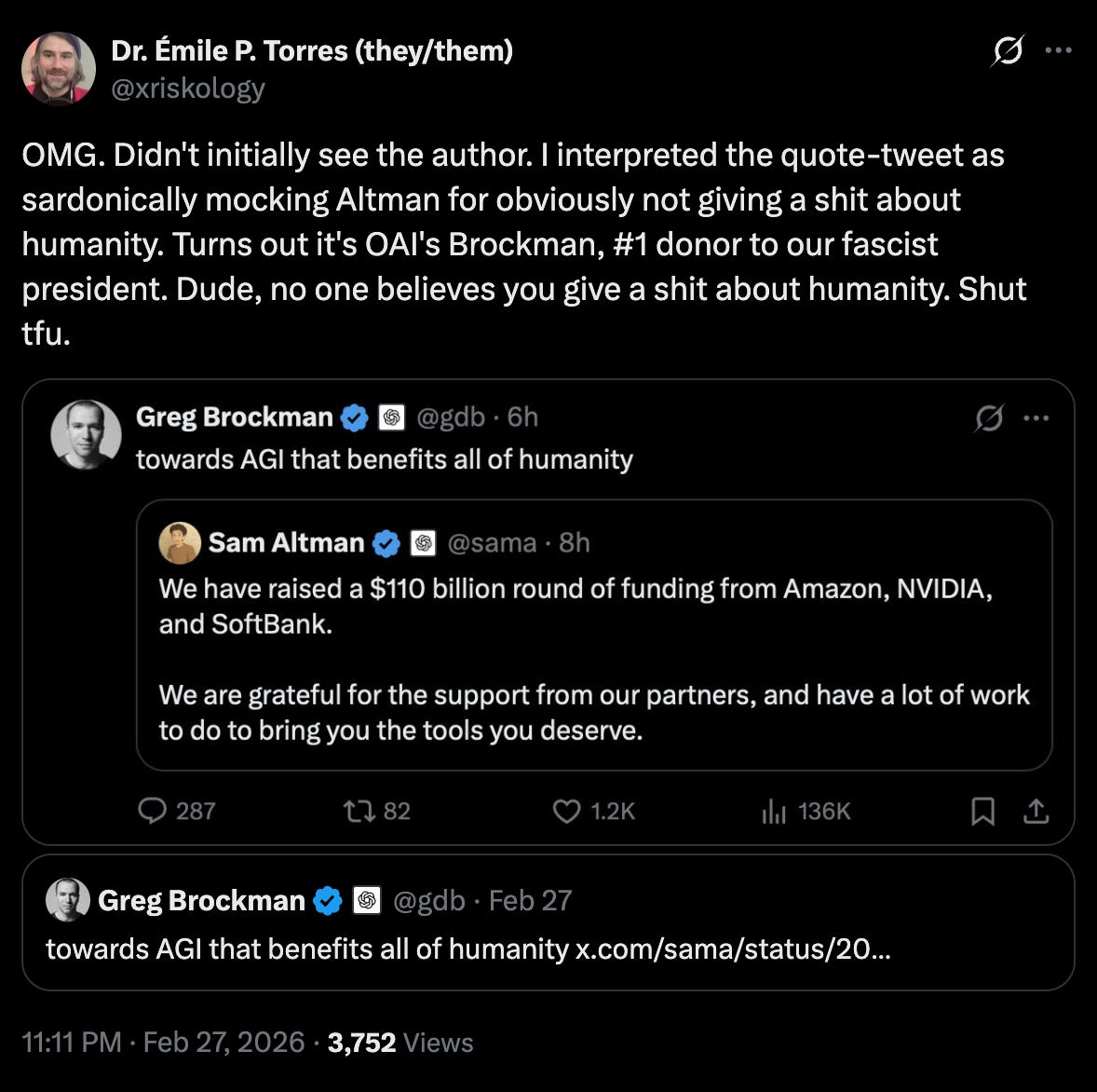 Rubbing it in, another cofounder of OpenAI (along with Altman), Greg Brockman, posted this yesterday: