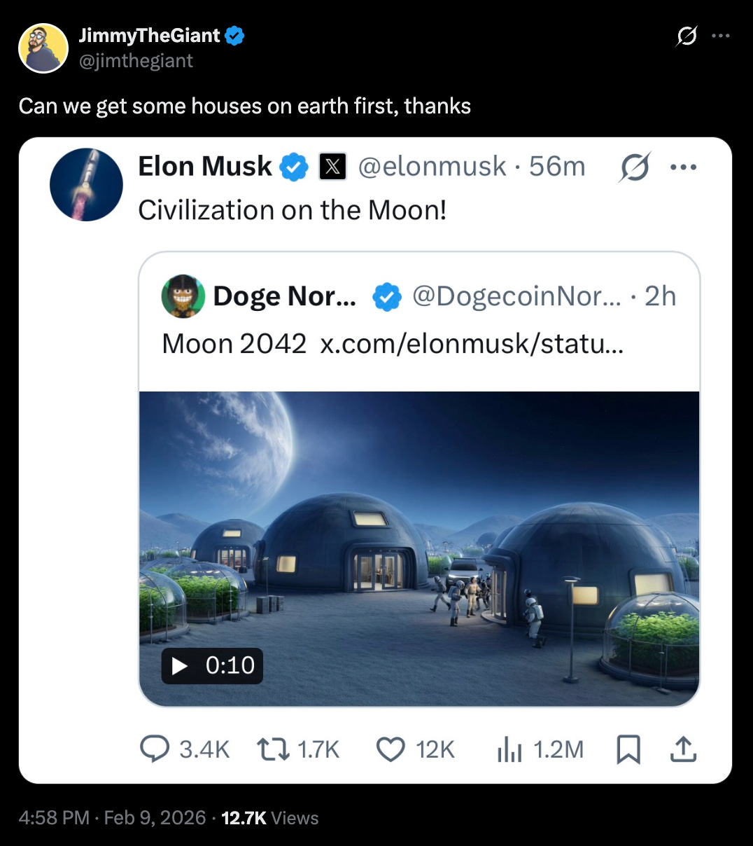 For those unaware, SpaceX has already shifted focus to building a self-growing city on the Moon, as we can potentially achieve that in less than 10 years, whereas Mars would take 20+ years.