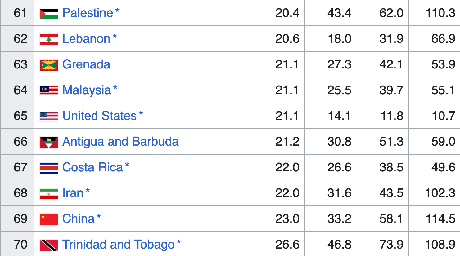 The US comes in at #22, just above Singapore, Poland, South Korea, and our geopolitical rival China, the last of which has pulled a staggering 800 million people out of poverty over the past few decades (more than twice the US population).
