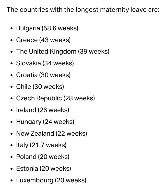 To offer a personal example, when I was a PhD student in Germany, I was given 26 days off each year for vacation. If I chose not to take all of these days, they would transfer to the next year, meaning that I could have up to 52 vacation days to spend — no questions asked, to be taken whenever I want. I knew someone in Germany who took off more than 6 months to deal with a mental health problem; their company, by law, couldn’t fire them for being sick.