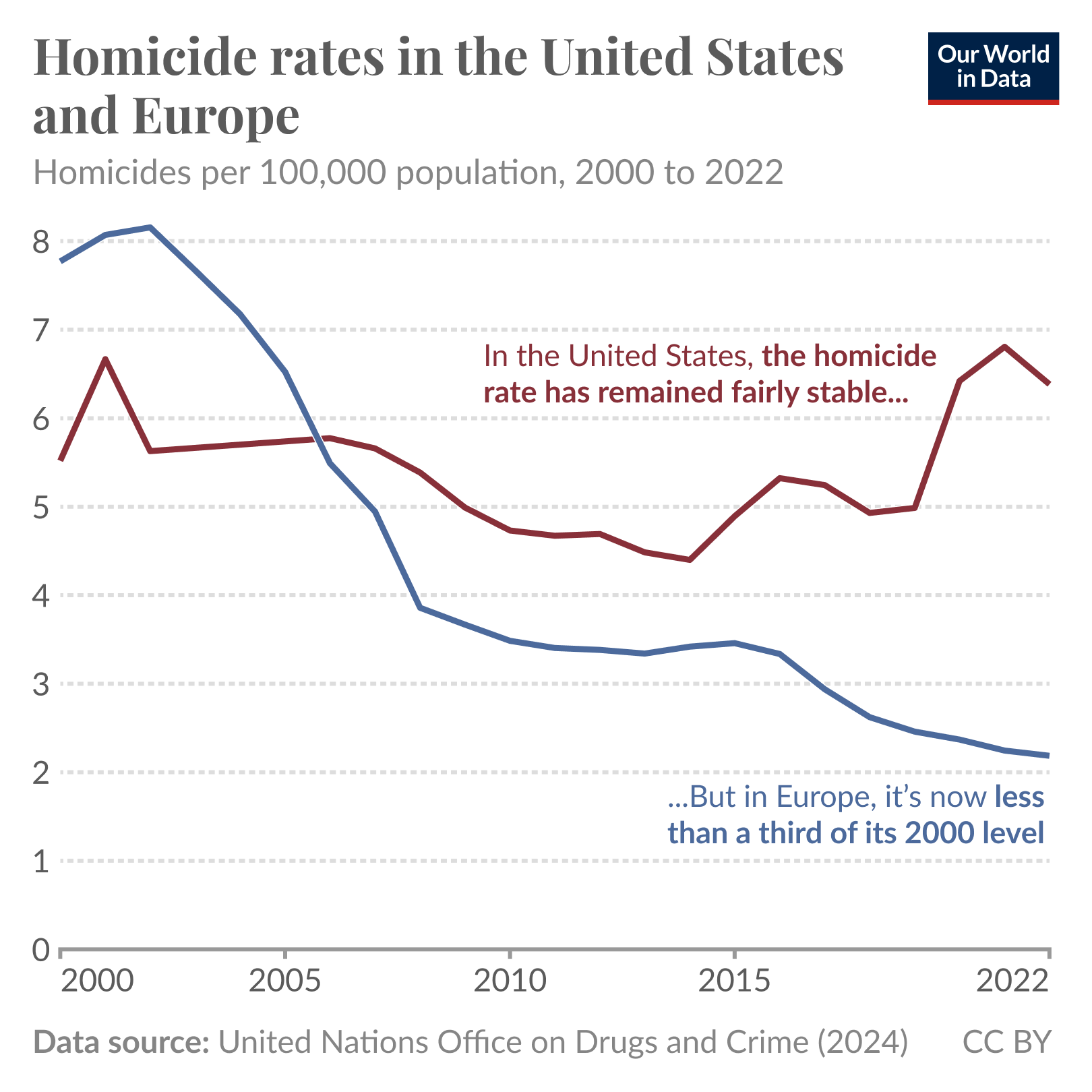 It’s not just greater safety that Europe offers. In virtually every category relating to quality of life, Europe is unequivocally superior to the US. In fact, most other Western countries are better than the US in just about every respect that matters. I bring this up not to boast that I managed to escape the “shithole country” in which I was born — to borrow Trump’s derogatory term for countries in Africa and elsewhere — but to emphasize that there is no reason the US couldn’t be as good as, or better than, the rest of the world. We are, after all, the wealthiest country. What’s lacking is the political will to implement commonsense social welfare programs, provide universal health care, clean up the environment, etc. It’s shameful. Our political leaders and the media apparatuses that enable them should be embarrassed.