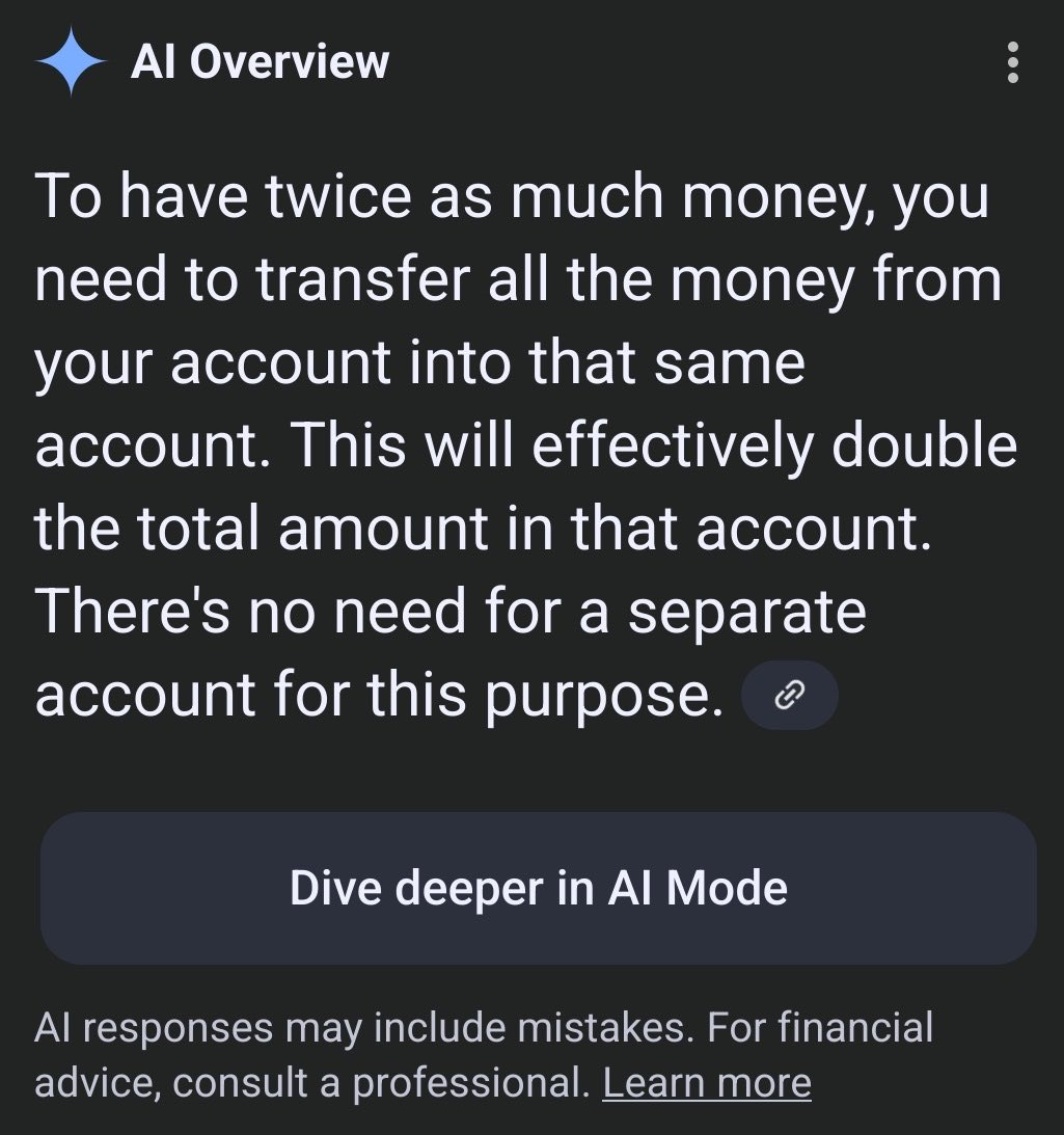 There’s an interminable list of examples like these from the past week alone, enough to fill an entire book. Many of these involve GPT-5, which one person describes as “broken by design.” But as noted above, other AI systems are equally incompetent. Here’s a recent example involving Gemini, which Google is increasingly integrating within its search: