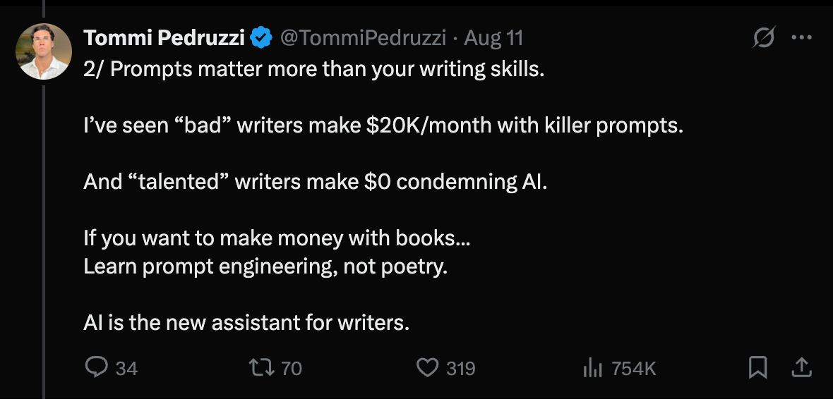 Pedruzzi himself has YouTube videos on how to get rich quick through AI publishing, writing on X that “AI gets you 70% of the way there. The other 30%, fact-checking, formatting, polishing is where you earn trust and keep sales coming.” (Earn trust! The gall!) He claims to have made $3 million “selling eBooks on Amazon KDP (without writing).” Writing without writing reminds me of this scene from Curb Your Enthusiasm.